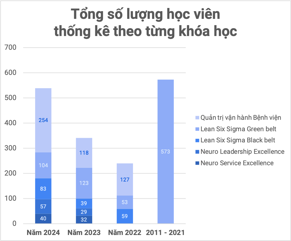 Khóa học nhằm nâng cao hiệu quả hoạt động thông qua phân tích dữ liệu và áp dụng các phương pháp cải tiến chất lượng, được phân chia theo 3 cấp độ – 3 đai Yellow, Green, Black. Có lớp chuyên biệt cho lĩnh vực Y tế và Công nghiệp – Dịch vụ, đem lại nhằm giải pháp tối ưu hóa quy trình, giảm lãng phí và cải thiện chất lượng.